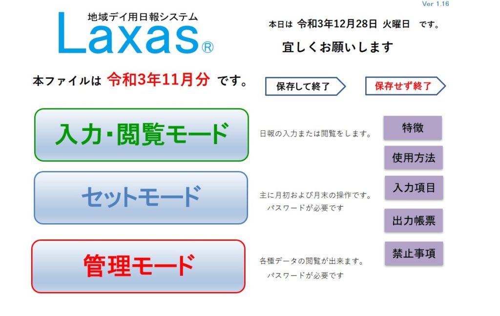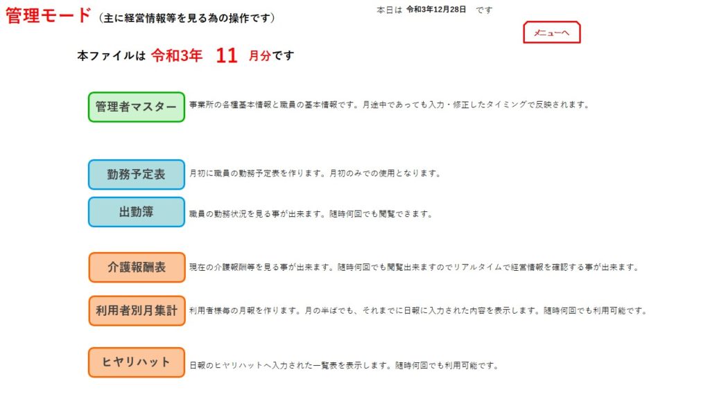 利用者様の情報の入力・設定を行うモードで、主に月初に使用します。